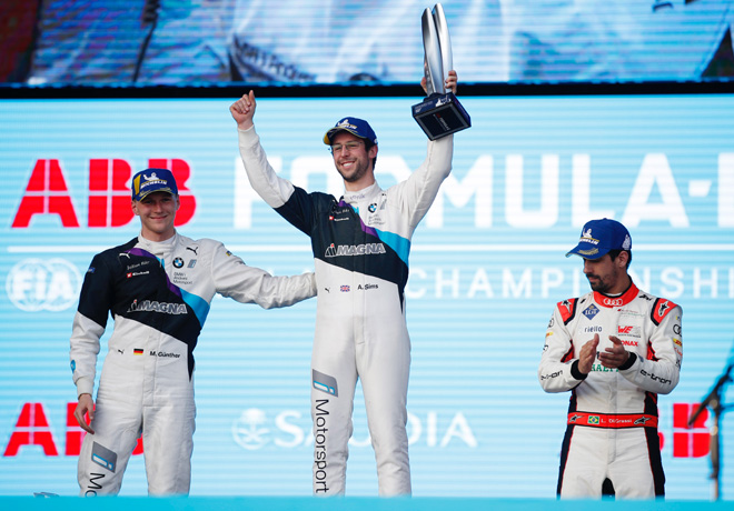 Alexander Sims consiguió su primera victoria en la segunda competencia de la Fórmula E disputada hoy en el circuito Al-Diriyah en Arabia Saudita. Autor de la pole position, el piloto del equipo BMW I Andretti Motorsport mantuvo la mejor posición de partida hasta la bandera a cuadros. En la carrera de ayer Sims también habÃa salido desde el primer lugar; pero luego su coche fue perdiendo rendimiento por una merma en la energÃa y terminó en el puesto ocho. Sigue leyendo