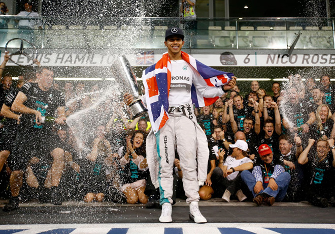 Lewis Hamilton con el Mercedes se proclamó bicampeón del mundo de Fórmula 1 tras conquistar la victoria en Abu Dabi, última prueba del campeonato que tenía puntaje especial. Segundo arribó Felipe Massa y tercero Valtteri Bottas, ambos con los Williams-Mercedes. Sigue leyendo