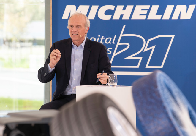 En el Capital Markets Day del Grupo, Florent Menegaux (Presidente), e Yves Chapot, (Gerente General y Director Financiero), acompañados por todos los miembros del Comité Ejecutivo del Grupo, presentaron “Michelin in Motion”, la estrategia "Todo sostenible" de Michelin para 2030. Sigue leyendo