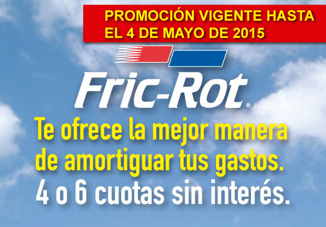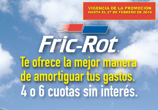 Monroe Fric-Rot, lÃder mundial en la fabricación de amortiguadores, continúa con la promoción junto a Visa de 4 y 6 cuotas sin interés. En todos los comercios adheridos se podrá financiar con tarjeta Visa, en 4 ó 6 cuotas, la compra de los amortiguadores Fric-Rot hasta el 27 de febrero de 2016. Sigue leyendo