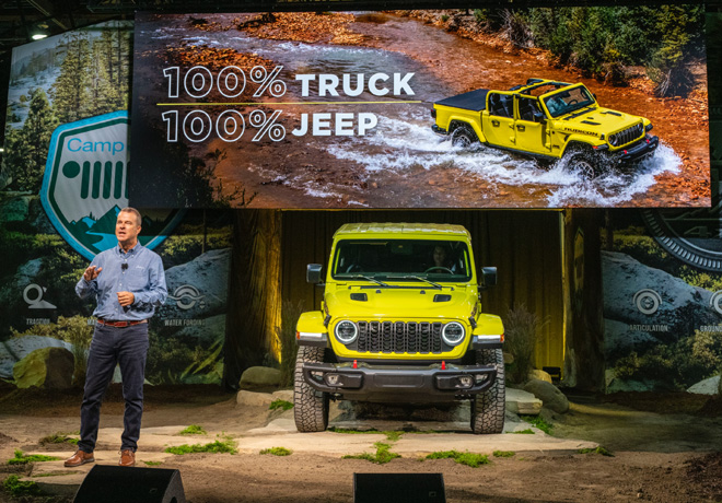La Jeep Gladiator más capaz y refinado de la historia presenta una nueva parrilla de siete barras, asientos con reglaje eléctrico opcionales, y bolsas de aire de cortina y sistema de radio con pantalla táctil Uconnect de 12,3 pulgadas de serie. Sigue leyendo