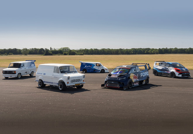 Además de nuevos modelos de performance, como la Raptor T1+, la pick-up eléctrica F-150 Lightning SuperTruck y el superdeportivo Mustang GTD, Ford exhibió en este evento y por primera vez, las cinco generaciones de la SuperVan juntas, dando inicio a la celebración de los 60 años de la Transit. Sigue leyendo