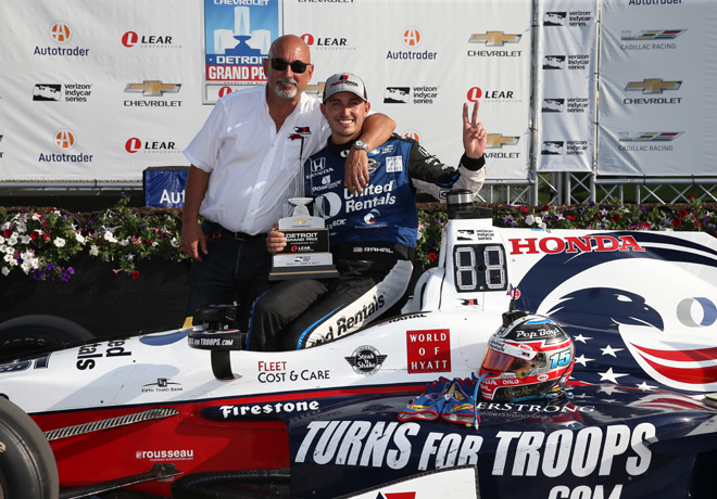Esta fue la quinta victoria de su carrera en 11 años en Indy y la primera desde su emocionante victoria el pasado agosto en el Texas Motor Speedway. Rahal cruzó la lÃnea de meta con 6.1474 segundos de ventaja sobre el campeón Scott Dixon, mientras que James Hinchcliffe completó un podio todo Honda. Sigue leyendo