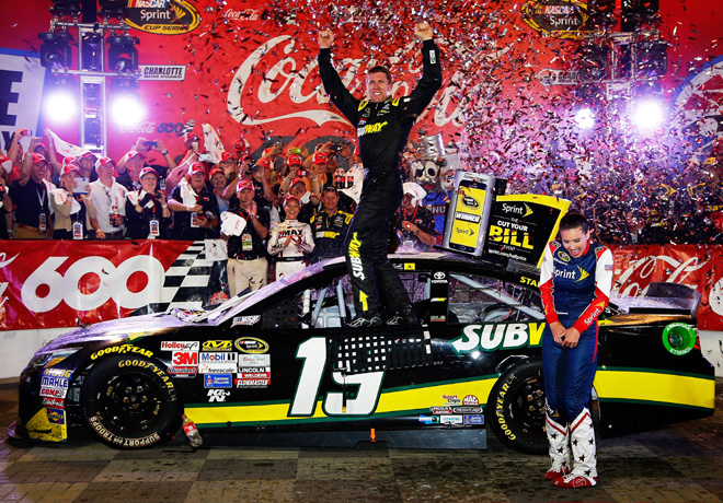 Carl Edwards (Toyota) logró en el óvalo de Charlotte la primera victoria de la temporada; la 24ª de su carrera y la primera para el equipo Joe Gibbs Racing. Segundo arribó Greg Biffle (Ford) y tercero Dale Earnhardt Jr. (Chevrolet). Matt Kenseth (Toyota) y Martin Truex (Chevrolet) completaron el top 5. Sigue leyendo