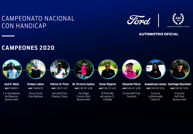 La Asociación Argentina de Golf realizó la Final del II Campeonato Nacional con Hándicap presentado por Ford y ya están los y las golfistas campeones nacionales por categorÃa. También la ganadora de la histórica Copa Ford 2020. Sigue leyendo