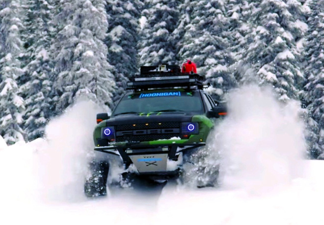 El piloto Ken Block, famoso por la serie Gymkhana en donde se luce realizando maniobras de drifting a bordo del nuevo Fiesta, lanzó un nuevo video, esta vez manejando un F-150 RaptorTRAX adaptado con orugas de nieve. Sigue leyendo