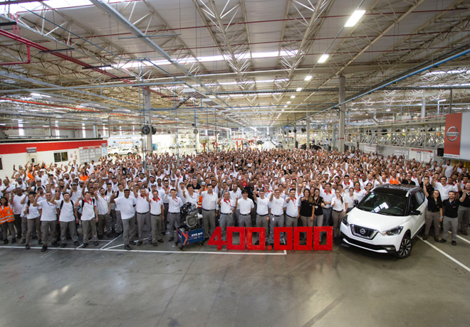 El Complejo Industrial Resende de Nissan (Estado de RÃo de Janeiro) celebra 400,000 vehÃculos fabricados desde el inicio de sus operaciones. El auto que marcó este hito fue el modelo más vendido del fabricante de automóviles japonés en Brasil, el Nissan Kicks, con un diseño de pintura de 2 tonos, la carrocerÃa blanca contrastando con un techo negro. Sigue leyendo