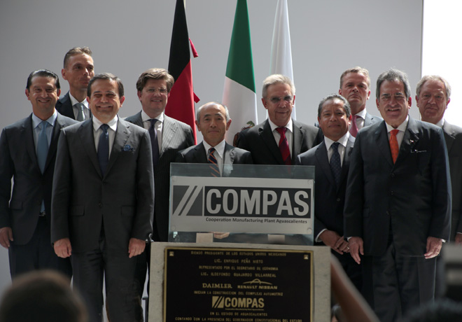 Daimler y la Alianza Renault-Nissan colocaron la primera piedra del complejo de manufactura de cooperación estratégica llamado COMPAS (Cooperation Manufacturing Plant Aguascalientes), en Aguascalientes, en el centro de México, el cual producirá vehÃculos compactos Premium de siguiente generación para las marcas Mercedes-Benz e Infiniti. Sigue leyendo