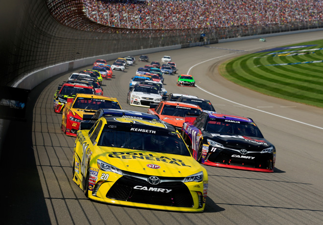 Matt Kenseth (Toyota) fue el vencedor de la competencia disputada en el óvalo de New Hampshire, después de recorrer 300 vueltas de las que sólo fue líder en 27 de ellas. Segundo llegó su compañero de equipo Denny Hamlin (Toyota), a 8.942 del ganador, y tercero Joey Logano (Ford), a 10.372. Sigue leyendo