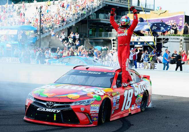 Kyle Busch fue el vencedor de la competencia disputada en el óvalo de Indianápolis, liderando la carrera en 149 vueltas de las 170 en que se extendió la competencia. De esta forma logró su segundo triunfo consecutivo en Indianápolis. Sigue leyendo