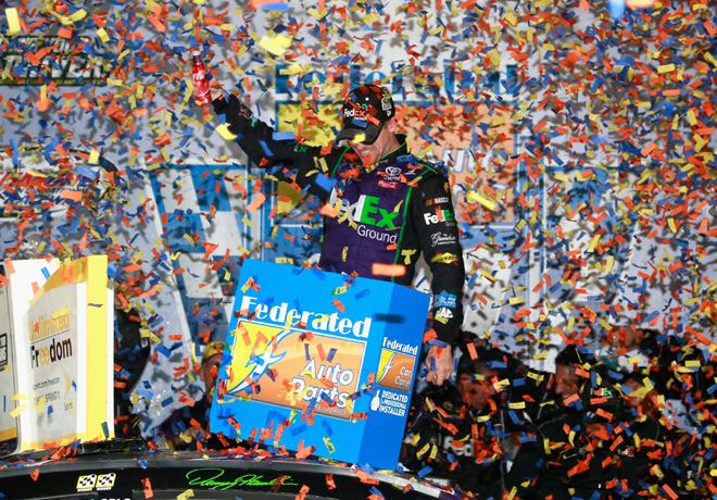Kenseth lideró 48 de las 400 vueltas, consiguiendo su tercera victoria en esta pista y la número 37 en la Copa Sprint. Segundo terminó Kyle Larson (Chevrolet), quien fue líder durante 85 vueltas y terminó a sólo 0,188 segundos detrás del ganador. El novato Chase Elliott completó el podio. Sigue leyendo