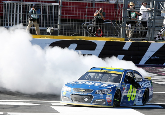 Jimmie Johnson (Chevrolet) venció en el Charlotte Motor Speedway después de una abstinencia de 24 carreras sin conocer el triunfo, en una competencia que tuvo que ser postergada ayer por la intensa lluvia. Johnson tomó la delantera en la vuelta 317 de las 334 pactadas, superando a Matt Kenseth (Toyota) por 1.474 segundos. Sigue leyendo