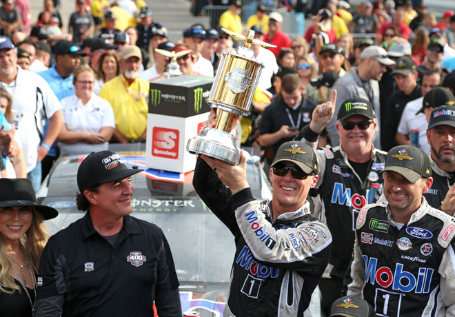 Después de 200 vueltas al óvalo de 2 millas en Michingan, Kevin Harvick consiguió sus segunda victoria de la temporada con una estrategia de conservar combustible. Este fue su tercer triunfo en Michigan y el número 47 de su carrera en NASCAR. Sigue leyendo