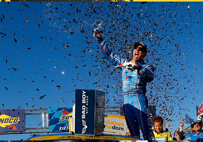 Kevin Harvick consiguió hoy su tan esperada primera victoria de la temporada en el óvalo de New Hampshire, luego de una excelente estrategia de parada en boxes; y contener el intento de Denny Hamlin, quien intentó superarlo con un toque incluido en la última vuelta. Harvick lideró 41 de las 301 vueltas, y aventajó a Hamlin por sólo 0.210 segundos en la bandera a cuadros. Sigue leyendo