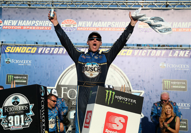 Kevin Harvick (Chevrolet), con sólo 8 vueltas lideradas, aprovechó el reinicio de la competencia a solamente 6 giros para el final de las 300 en el New Hampshire Motor Speedway para lograr la victoria, siendo el primer triunfo en este circuito desde 2006. Sigue leyendo