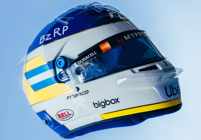 Franco Colapinto tendrá un nuevo casco en homenaje a Carlos Reutemann para el Gran Premio de México y también para el de Brasil. El piloto argentino que tuvo excelentes desempeños en su debut en la categoría y en el equipo Williams en las últimas cuatro fechas, sumando 5 unidades para el campeonato de pilotos, mañana comenzará las prácticas en el Autódromo Hermanos Rodríguez con esa nueva decoración del casco. Sigue leyendo