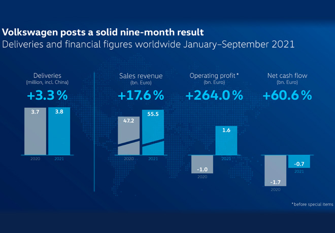 A pesar de la actual escasez estructural de semiconductores en toda la industria, Volkswagen entregó alrededor de 3,8 millones de vehículos a clientes en todo el mundo en los primeros nueve meses del año (+ 3,3% en comparación con el mismo período del año anterior). Sigue leyendo