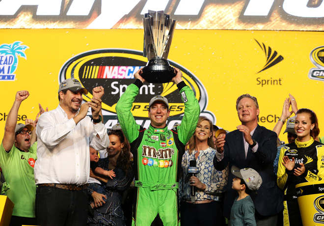 Tras sólo nueve meses de haber sufrido fracturas en ambas piernas en un accidente en Daytona en la primera carrera de la temporada, Kyle Busch se coronó campeón de la NASCAR Sprint Cup 2015 en el Homestead-Miami Speedway, tras ganar la Ford EcoBoost 400. Este es el primer tÃtulo para Busch y para Toyota en la Sprint Cup. Sigue leyendo