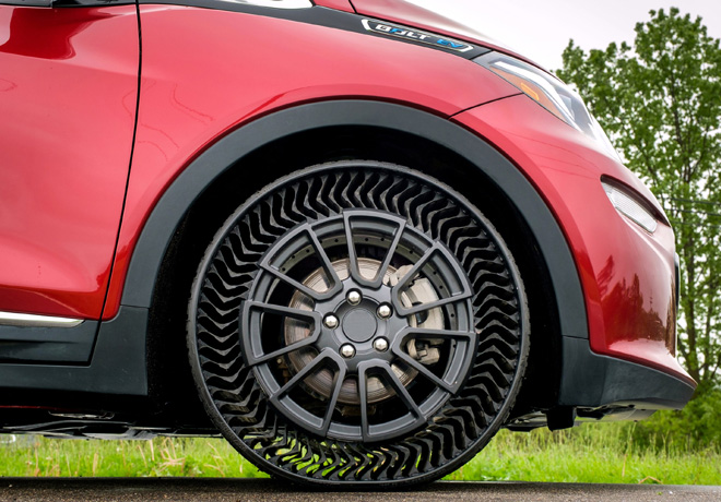 Michelin y General Motors presentaron una nueva generación de llantas con tecnologÃa sin aire, llamado prototipo Uptis de Michelin (sistema único anti-perforación, por sus siglas en inglés). GM pretende desarrollar un neumático sin aire en conjunto con Michelin y apunta a introducirlo en vehÃculos de pasajeros para el año 2024. Sigue leyendo