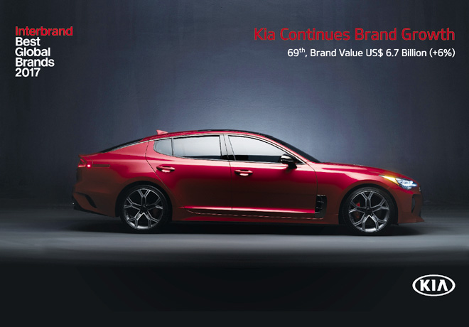 Kia Motors fue clasificada una vez más entre las marcas de mayor valor en el mundo, de acuerdo con el informe "Best Global Brands" 2017 de la consultora de marcas Interbrand. En los últimos diez años el valor de marca se incrementó en un 645%. Sigue leyendo