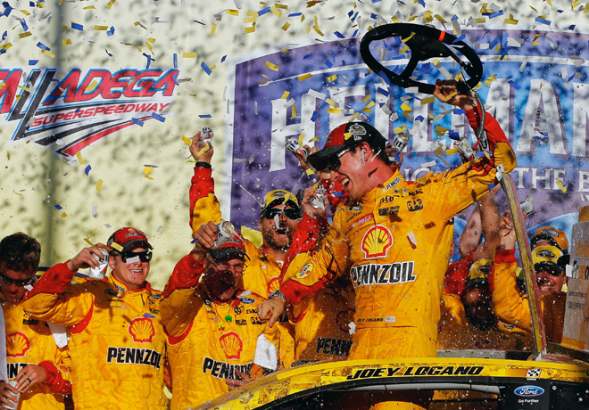 Joey Logano (Ford) logró la victoria en Talladega, la segunda en la temporada y la décimo sexta de su carrera en NASCAR. Segundo fue Brian Scott (Ford), en su mejor actuación en la categorÃa, mientras que Denny Hamlin (Toyota) terminó tercero. Sigue leyendo
