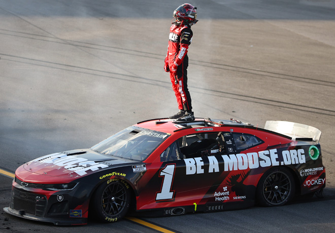 Chase Elliott ganó la competencia en Talladega, que terminó bajo la condición de bandera amarilla. Después del reinicio, Elliott tomó la delantera que tenÃa Joey Logano con cuatro vueltas para el final, y se mantuvo en el liderazgo hasta la victoria. Sigue leyendo