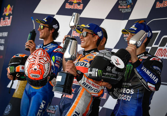 Día grande para el motociclismo español en Jerez con un pleno en el podio de MotoGP en la carrera del GP de España. Marc Márquez recobró el liderazgo del campeonato, en detrimento de Andrea Dovizioso (Mission Winnow Ducati), al conquistar el triunfo por delante de Álex Rins (Team Suzuki Ecstar) y Maverick Viñales (Monster Energy Yamaha). Sigue leyendo