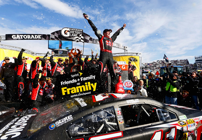 En un cerrado duelo al final, Busch superó a Jimmie Johnson, el seis veces campeón de la NASCAR Sprint Cup Series, faltando solo 10 vueltas, y lo superó por apenas 0.263 segundos, con lo que evitó la 9ª victoria de Johnson en Martinsville. Sigue leyendo