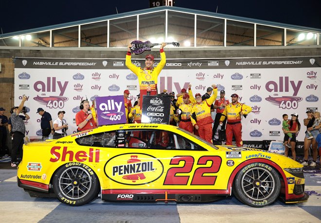 Joey Logano superó un récord de cinco tiempos extra, estirando su último repostaje de combustible para anotar su primera victoria de la temporada de la Copa NASCAR en un domingo abrasador en el Nashville Superspeedway. Sigue leyendo