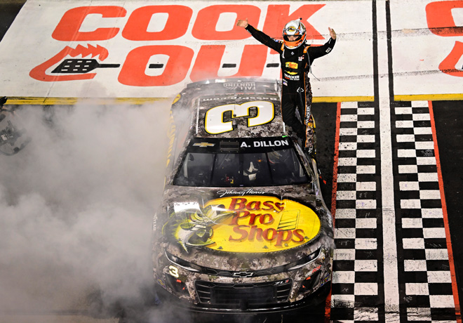 En una carrera en la que la lluvia se hizo presente durante todo el fin de semana, Austin Dillon (Nº3 / Chevrolet) fue agresivo hasta el final y consiguió un puesto en los Playoffs en la última competencia de la etapa regular dejando fuera de la contienda a Martin Truex Jr. (Nº19 / Toyota). Sigue leyendo