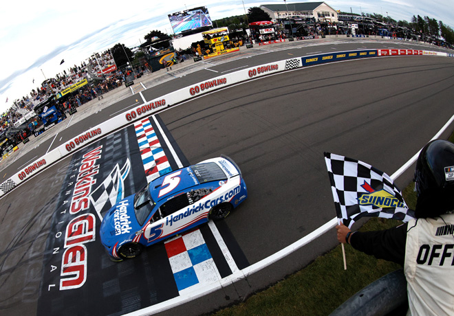 Tras una demora de poco más de una hora y media debido a una tormenta eléctrica que azotó al circuito ubicado al oeste del Estado de Nueva York, la competencia finalmente se puso en marcha y Kyle Larson (Nº5 / Chevrolet) pudo conseguir su segunda victoria del año. AJ Allmendinger (Nº16 / Chevrolet) y Joey Logano (Nº22 / Ford) completaron el podio. Sigue leyendo